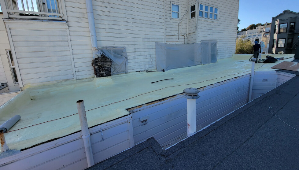 Our team installs spray polyurethane foam roofing systems for flat and low-slope residential and commercial roofs across the Bay Area.